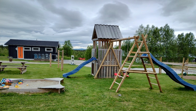 Hytte 4 er en større hytte for seks personer med eget bad, kjøkken med oppvaskmaskin, soverom med ekstra lang (210 cm) dobbeltseng og hems med dobbeltseng og to enkeltsenger.